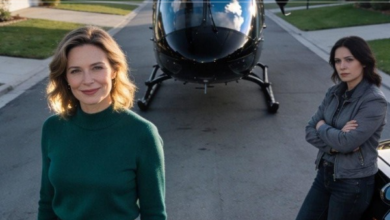 Because just then, a firm voice sounded from behind her — Robert, my father-in-law, flanked by my husband Ethan… and my mom.