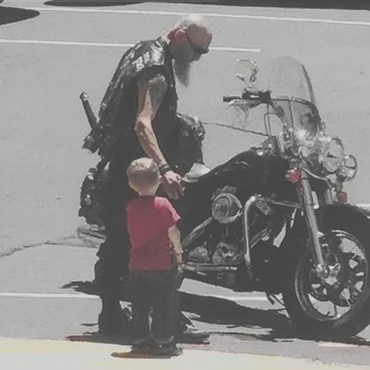 I had just pulled into Walmart for milk after a twelve-hour shift, still wearing my leather vest, when a boy broke away from his mother and ran straight to my Harley like it was calling him.
