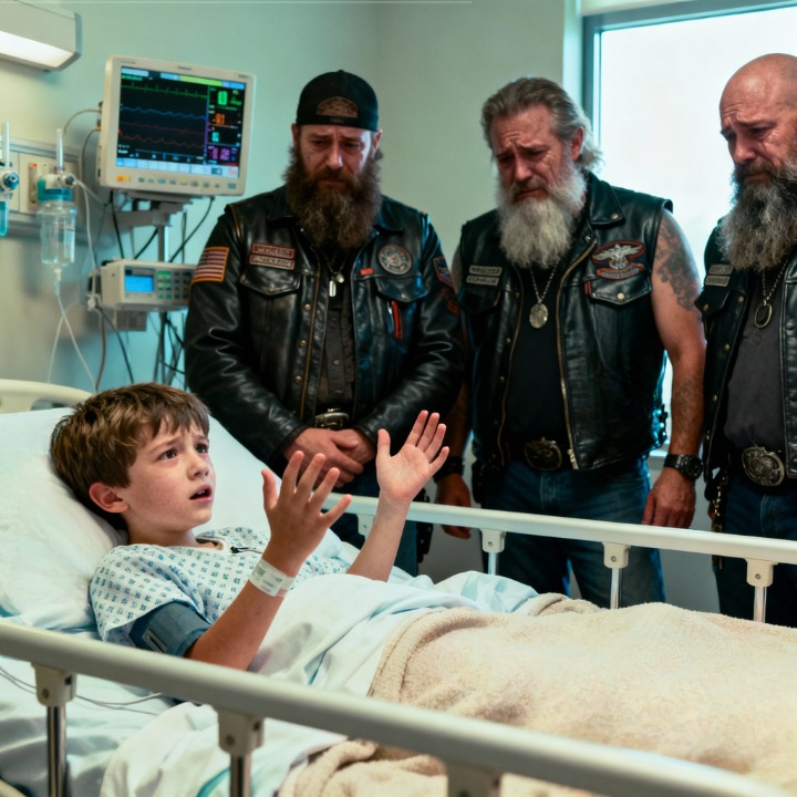 His name was Aiden. Just seven years old. His small frame was surrounded by wires and machines, fighting to keep him alive. Even in that state, his grip on my leather vest was strong, his one open eye determined.