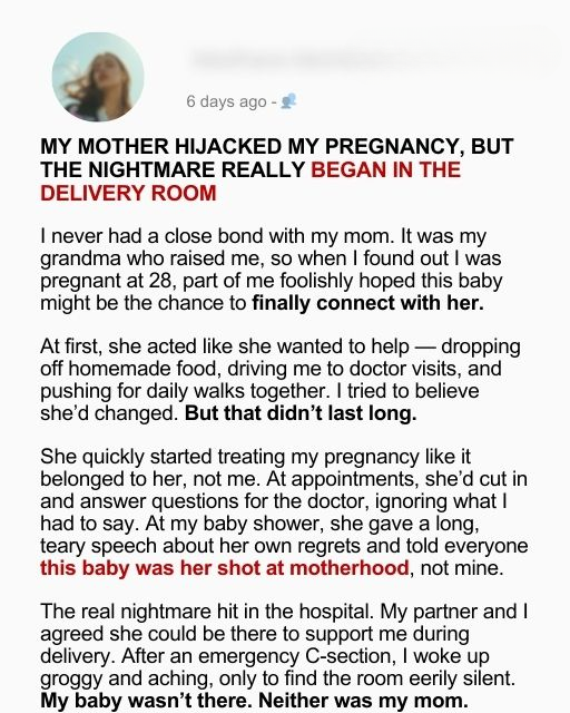 Then the mask slipped. It wasn’t about me or the baby; it was about her. At prenatal visits she’d answer over me, cut me off, and steer the conversation like she was the patient. I became invisible in my own pregnancy.