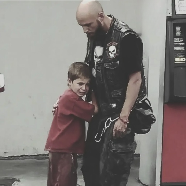 All because a terrified boy ran to the scariest-looking stranger and asked for help—and that stranger decided to be the man the kid needed.