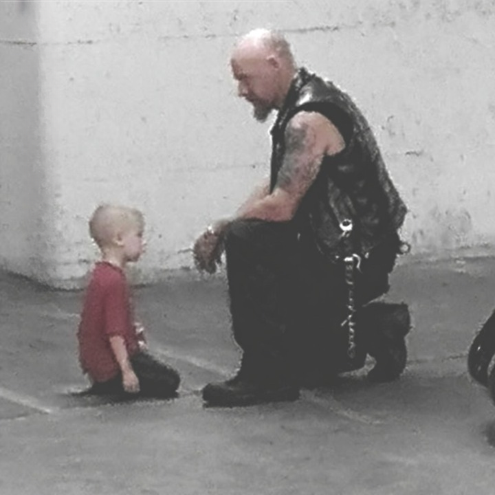 He stared at my leather vest, my tattoos, my weathered face—and instead of looking frightened, he seemed relieved.