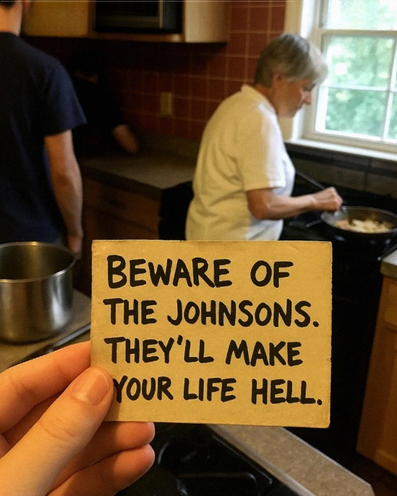 About three months in, I found a folded scrap of paper shoved in the back of a kitchen drawer. A message from the former owner: “Beware of the Johnsons. They’ll make your life miserable. Don’t let them get too close.”
