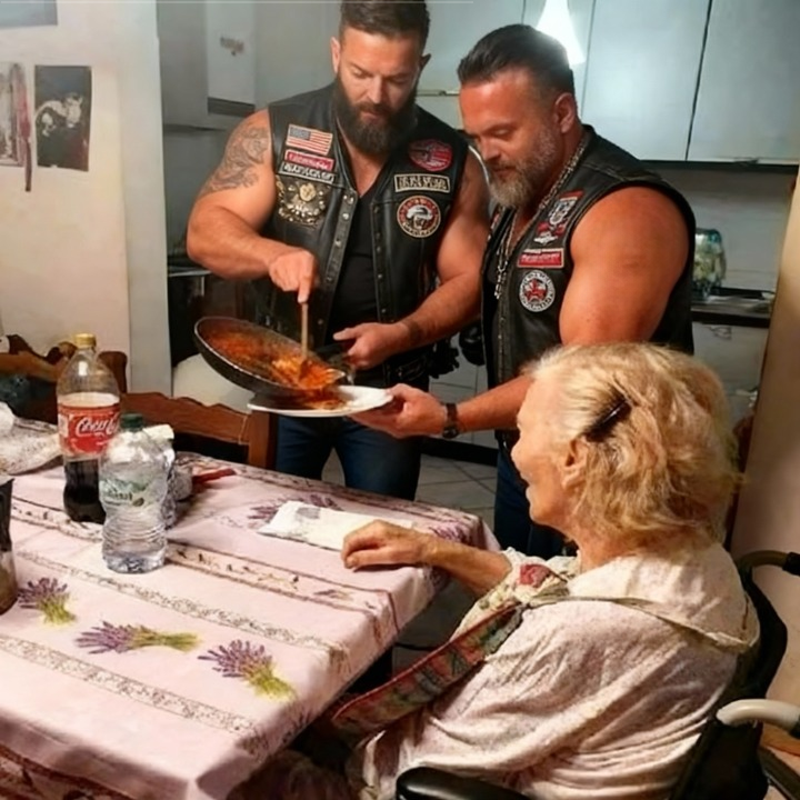 They kept their word. Every day, one or more members of Iron Brotherhood came. Ray—the president I’d slammed the door on—handled Wednesdays. A retired paramedic, he managed meds and pain, and showed me photos of his grandkids. Marcus, a professional chef, came Thursdays to cook gentle foods—soups, tender chicken, mashed potatoes—and portion them for reheating. Tommy, the youngest at about forty, spent Fridays scrubbing the house, washing linens, cleaning the bathroom. Weekends rotated: mowing, watering, repairs, movies, reading aloud when my eyes failed. They drove me to chemo, sat through infusions, held my hand when the nausea slammed me, tucked me into bed afterward.