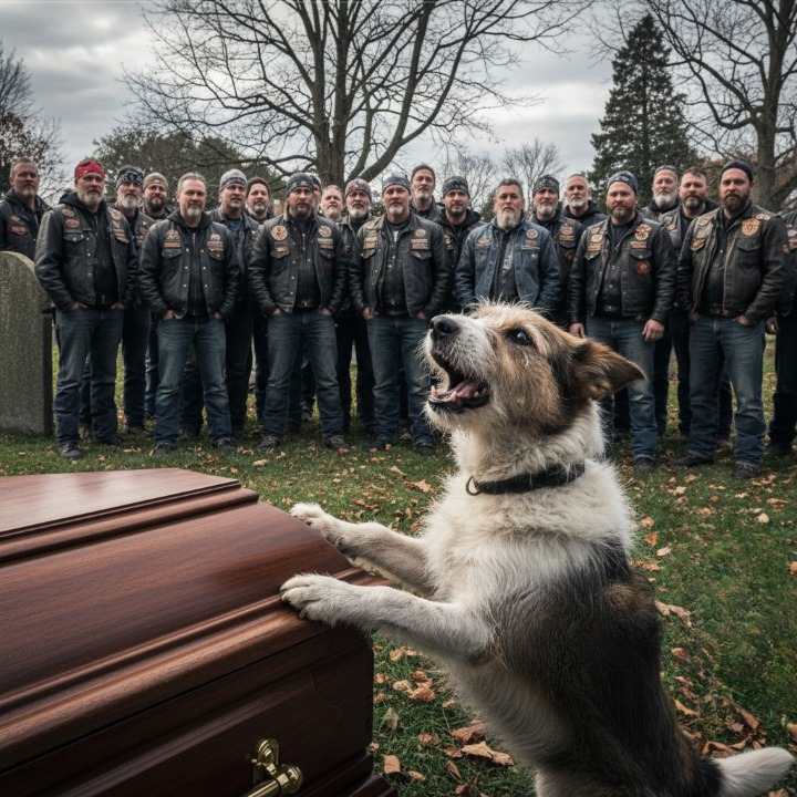 My brother Finn had always been loyal to his motorcycle club. Those men—lined up behind me in their leather jackets, faces carved with years of wind and road—had been his second family. They were supposed to be his brothers. But as Scrappy clawed harder and harder at the polished wood, I caught something flicker in their eyes. Not compassion. Not sadness. It was fear.