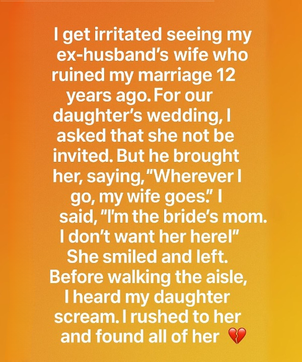 As the mother of the bride, I had imagined this day for years, yet I couldn’t escape the heaviness that came with it. Among the invited guests was my ex-husband’s new wife—the same woman who had entered his life while I was still his spouse. My only wish had been that she stay away. This day was for my daughter, not for me to relive heartbreak.