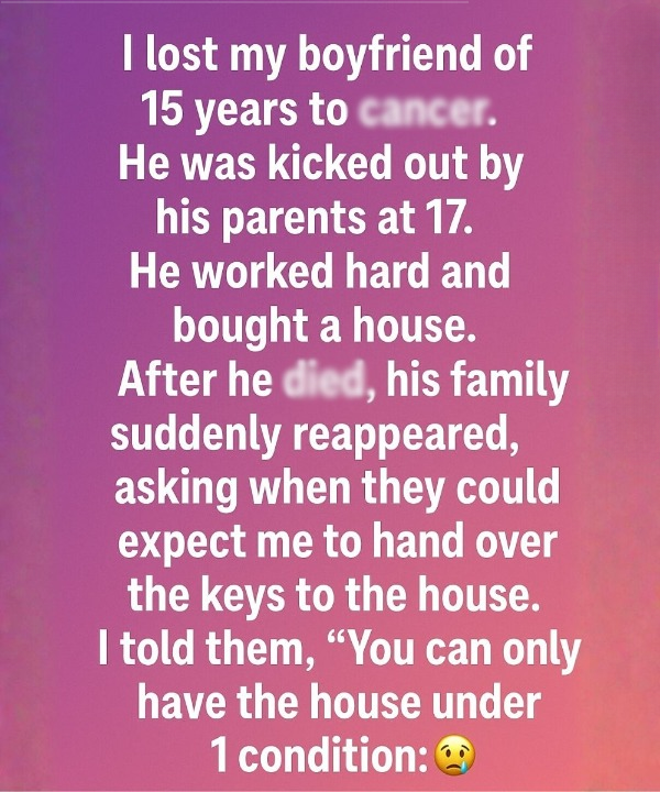I looked at them calmly and said, “You may have the house… but only if you promise to fill it with the love he put into it.”