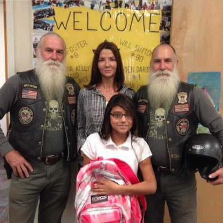 It was the first day of school last September. Their names were Dale and Frank, both in their late sixties, with white beards that brushed their vests and patches that told a thousand stories.