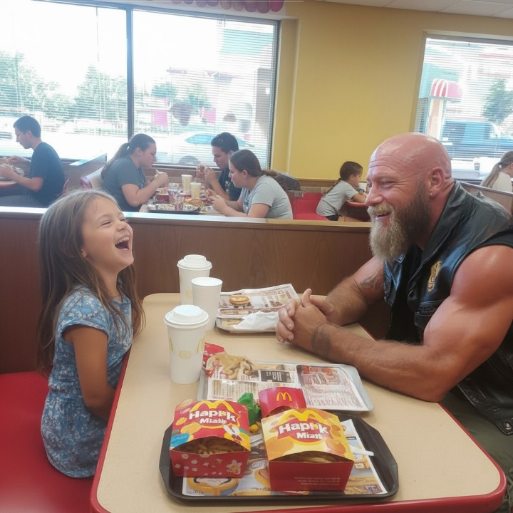 Every Saturday, like clockwork, a large, intimidating biker walked into a small-town McDonald’s. Dressed in black leather, his arms covered with skull tattoos and his face marked by old scars, he always ordered two Happy Meals and sat at the same booth in the corner. At exactly noon, a little seven-year-old girl would appear, run straight to him, and leap into his massive arms, calling him “Uncle Bear.”