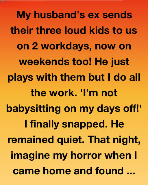 My husband’s ex had been sending their three kids to our house twice a week for months, but recently it had gotten worse—they started staying over on weekends, too. While my husband played with them, I ended up doing all the work. One day I snapped and told him, “I’m not babysitting on my days off!” He didn’t respond. But that evening, I came home from work and saw something that made my stomach drop—the kids had unpacked everything. Clothes, school supplies, even their toothbrushes. They weren’t visiting anymore. They were moving in.