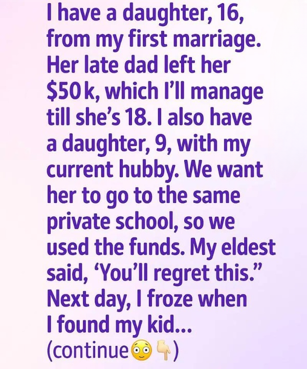 I have a sixteen-year-old daughter from my first marriage. Her father, who passed away far too soon, was a loving, devoted man who never failed to show up for her. Before he died, he left her a sum of $50,000 — his way of securing her future, of making sure she’d always have something to fall back on. I’ve managed that money ever since, holding it safely until the day she turns eighteen. It was meant to be her inheritance, her father’s last act of love.