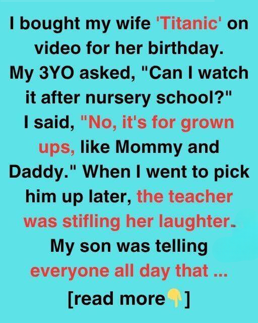 He nodded solemnly, which made Emily laugh. But later that day, at preschool, he proudly told everyone, “Mommy and Daddy watch Titanic alone at night!”