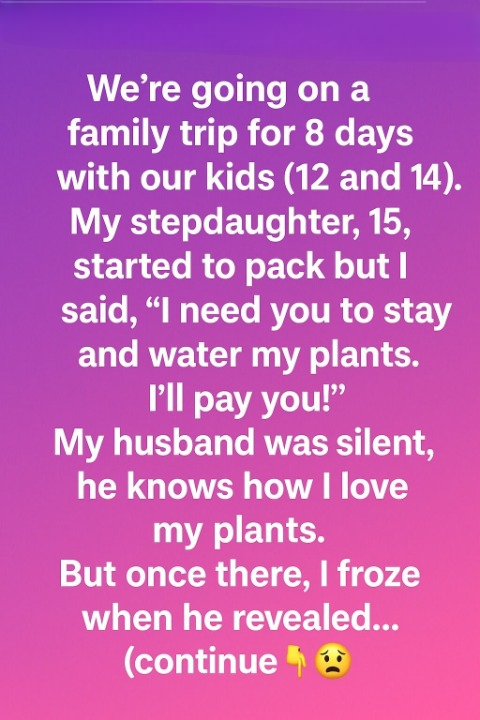 We were packing for an eight-day family trip with our two kids, ages twelve and fourteen, when I noticed my fifteen-year-old stepdaughter, Lily, zipping up her suitcase too. Smiling gently, I said, “Sweetheart, I actually need you to stay home and take care of my plants. I’ll pay you, of course!”