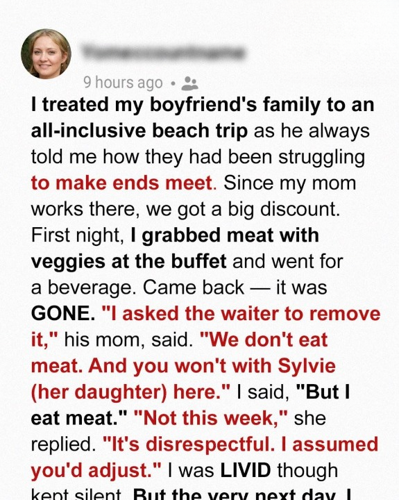 So when our relationship got serious, I wanted to do something nice—something that would make his family feel appreciated. My mom worked at a luxury beach resort in Florida and could get me a big discount, so I suggested we take a family vacation there, on me. Ethan’s face lit up like a kid on Christmas morning, and his mother, Brenda, even wiped away a tear when she heard.