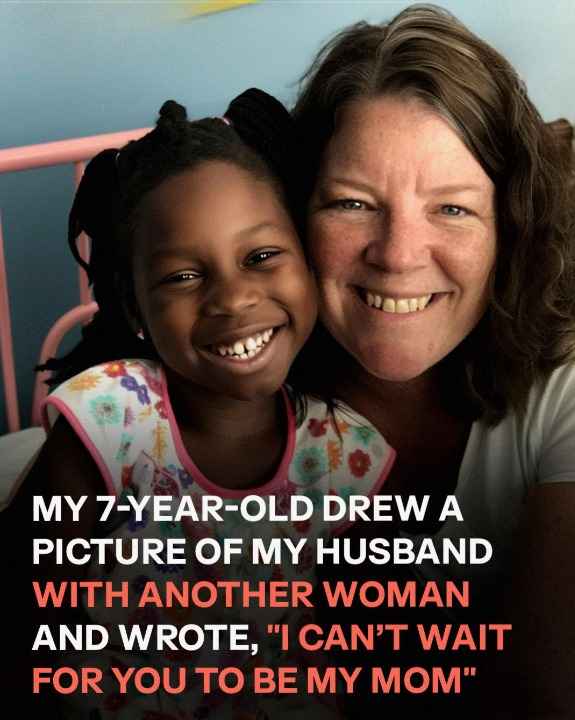 While tidying up the crayons and coloring books scattered across the living room, Amber noticed a folded piece of paper under the table. It was one of Mia’s drawings — at first glance, just a simple child’s sketch of a happy family. Amber smiled faintly, but her expression changed as she took a closer look. The man was clearly Jack. The little girl was Mia. But the woman — she wasn’t Amber. The woman had long brown hair and wore a flowing white bridal gown. Beneath the drawing, in Mia’s cheerful handwriting, were the words that made Amber’s blood run cold: