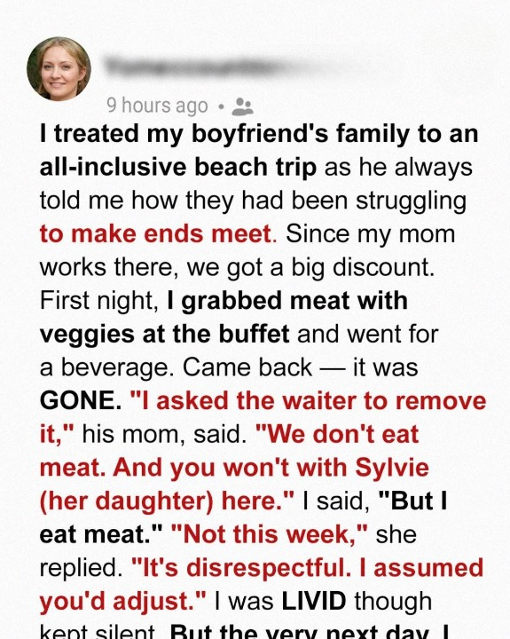 The following night, something remarkable happened. No one mentioned meat. No judgmental remarks, no tight smiles, no guilt trips. When the waiter came to take our orders, I confidently asked for steak — medium rare — and not a soul objected. Brenda quietly ordered a salad, keeping her eyes on her plate.