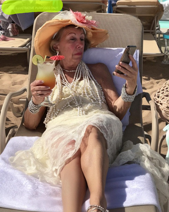 Day two, we were out on the beach. Janet reclined beneath a big umbrella, cocktail in hand.