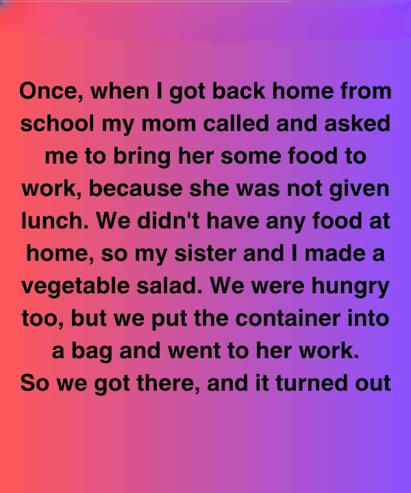 When I got home from school that afternoon, I found a voicemail from my mom. Her voice was tired but gentle as always: she hadn’t eaten all day and asked if I could bring her something to work. We didn’t have much — a few vegetables, some leftovers — but my sister and I scraped together a small salad. We were hungry too, but we packed it neatly, tied the bag, and started walking.