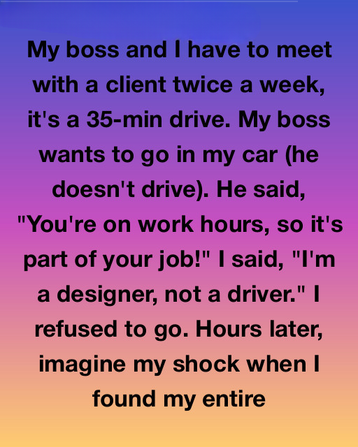 When my boss demanded I drive him to client meetings every week—because he didn’t own a car—I stood my ground. “I’m a designer, not a driver,” I told him. His response? My desk was boxed up with a note saying I could “work from home until they found a real team player.”