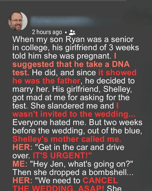 Two weeks before the wedding, when the invitations were printed and I had accepted my absence, I got a phone call from Shelly’s mother, Jen. Her voice trembled with urgency. She asked me to meet her in private, saying she needed to talk about something incredibly important.