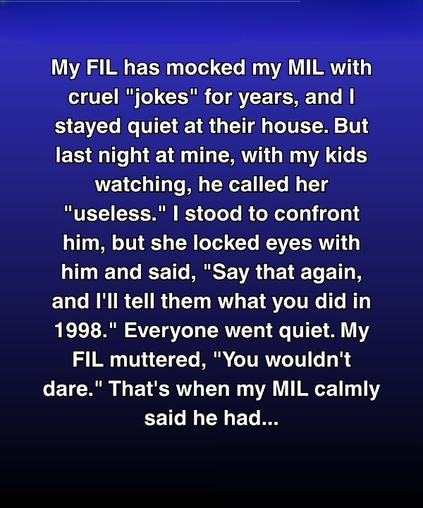 For years, my father-in-law, Radu, has hidden cruelty behind jokes aimed at my mother-in-law, Mirela. I always stayed quiet, watching as he belittled her while she smiled politely. But last night at our house, with the kids at the table, he called her “useless,” and something finally snapped.