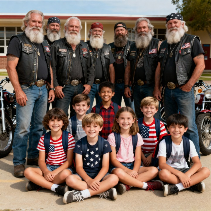 The biker’s voice was rough and steady when he said, “We’re not leaving until we meet these kids. So you can let us in, or we can stand here all day. Your call, teacher.”