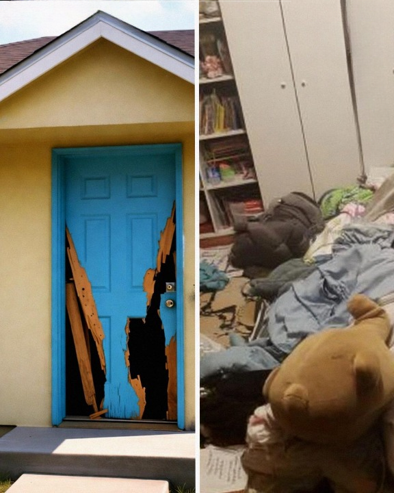 The front door of our house was broken. Not cracked. Not damaged. Completely smashed in. Splintered wood everywhere. The welcome mat shoved aside like someone kicked past it without a second thought.