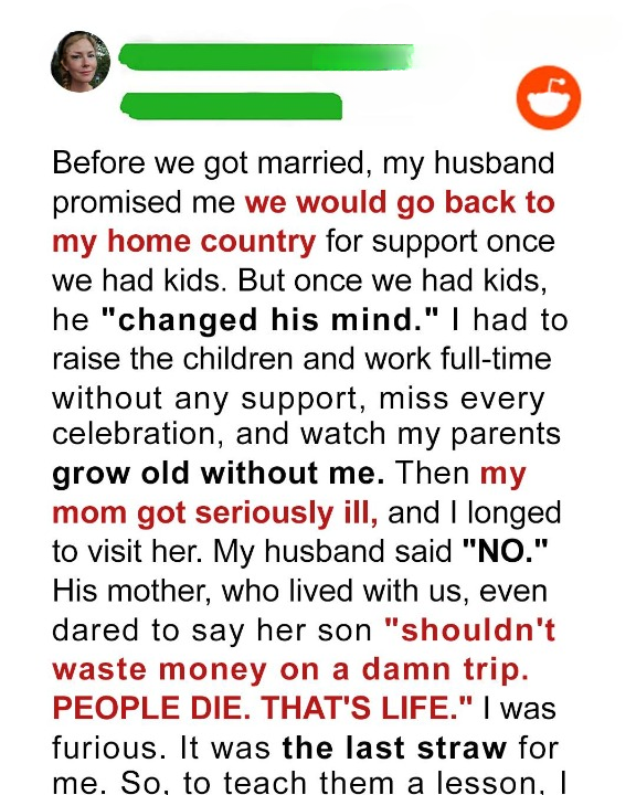 When his own mother became ill, we opened our doors without hesitation. She moved in, took over the guest room, and from the very beginning, made it clear that she didn’t think I was good enough for her son. She criticized everything I did—how I cooked, how I dressed, even how I raised our kids.