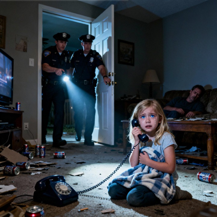 The living room was a wreck — empty beer cans littered the floor, dishes overflowed in the sink, and pieces of broken furniture leaned against the walls. The house felt heavy with silence, as if it was hiding something unspeakable. Then, from somewhere in the back, came a faint sound — quiet, frightened sobbing.