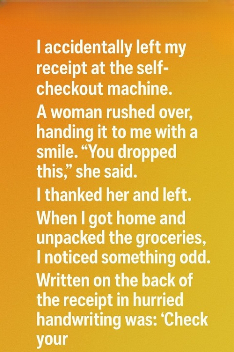It started as a routine grocery trip — nothing remarkable, just another errand in a busy day. I scanned my items at self-checkout, packed my bags, and left. A woman behind me quietly handed me my receipt with a gentle, “Here, your receipt.” I thanked her automatically and walked away, unaware that the small slip of paper would soon change my day — and maybe my view of people entirely.