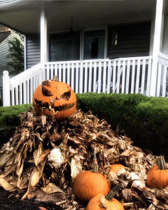 One chilly morning, I opened the door and was hit by the stench of rot. My stomach turned. My yard was buried under a mountain of smashed pumpkins, dead cornstalks, and busted Halloween junk. A note was pinned to one of the pumpkins.
