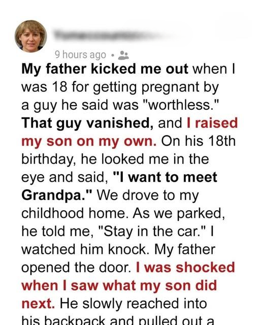 When I was seventeen, one truth tore my world apart: I was pregnant. Those two words cost me my home, my father’s affection, and the life I had known. Eighteen years later, my son stood on that same doorstep and said something neither of us ever expected.