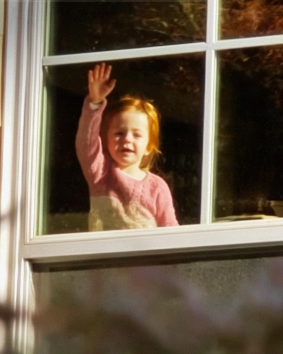When I looked toward the window, my stomach tightened. She was there again — the same small silhouette, waving, her hand moving in that same slow, deliberate rhythm.