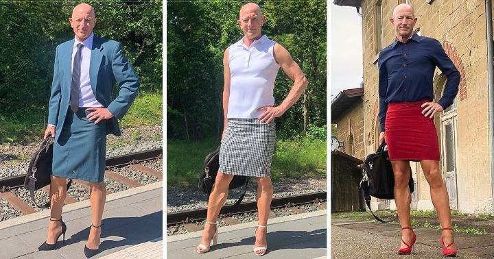 Mark Bryan, a 61-year-old robotics engineer living in Germany, has become an unexpected icon of confidence and individuality. For the past decade, he’s been walking into his engineering office every day wearing pencil skirts, tailored blouses, and striking high heels — and he does it with complete self-assurance.