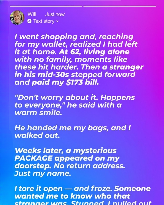 Days turned into weeks, yet that small moment stayed with him. It wasn’t just about the groceries. It was about the kindness. About being seen. About the warmth that seemed to fill the cold, empty corners of his life. Will had lived alone for years, his world quiet and predictable. But that day, something shifted — as though someone had opened a window in a room that had long been closed.