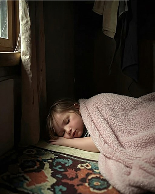 She was curled up under the basement stairs, her small frame wrapped in a blanket that looked far too thin against the chill down there. Her pink backpack was beside her, half unzipped. She looked so small, like the shadows themselves were trying to hide her. Her hair was tangled, her skin pale, and there were dark circles under her eyes.
