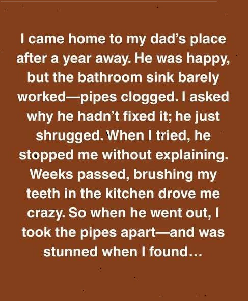 The first thing that really caught my attention was the bathroom sink. It barely worked. The drain was so clogged that water pooled and refused to go down, leaving a cloudy mess in the basin. I asked my dad why he hadn’t fixed it, and he gave me that familiar shrug—the one that always seemed to say, don’t make a big deal out of it. “It’s not that important,” he said simply, as if the sink were nothing more than a small inconvenience he could live with. But it bothered me. Every morning, I found myself brushing my teeth in the kitchen sink, growing more frustrated each day. Surely, he could have called a plumber or at least tried to fix it himself. But that was just like him—always brushing off the little problems, pretending they didn’t matter.