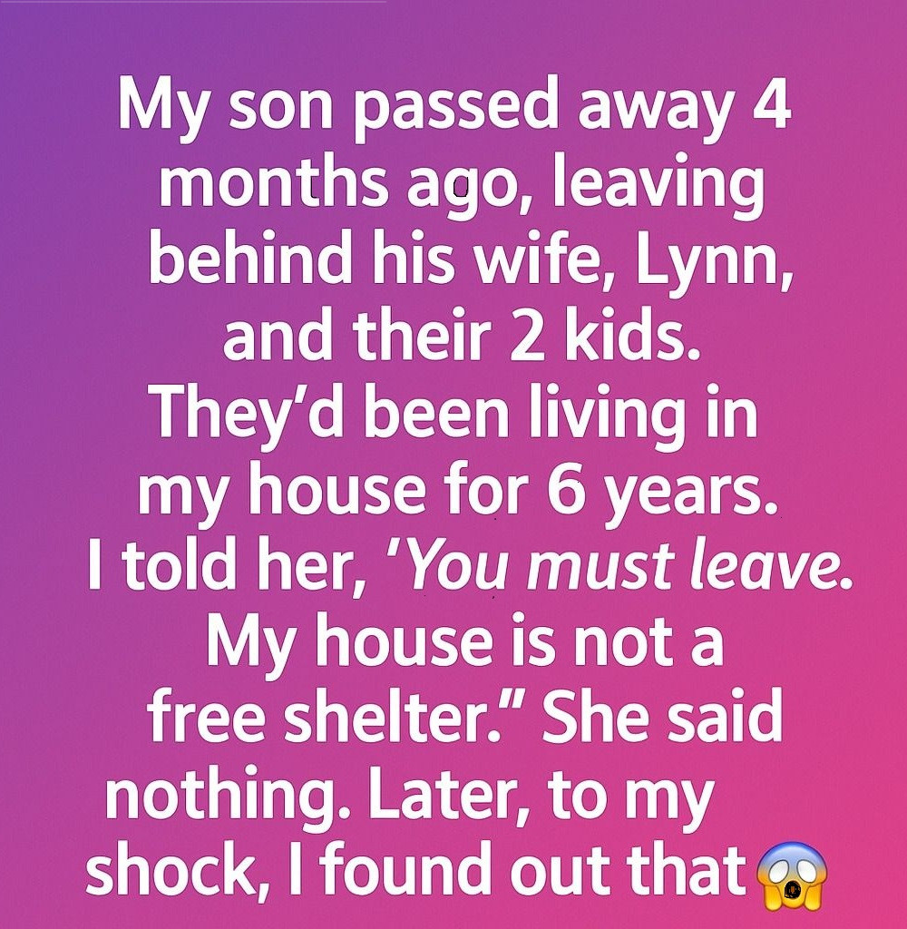 He left behind his wife, Lynn, and their two small children — my grandchildren — who had been living with me for the past six years. Our home had always been full of noise, movement, and warmth. The sound of toys scattering across the floor, Lynn’s soft voice reading bedtime stories, the kids’ laughter echoing through the kitchen — it all became part of my everyday rhythm. Then suddenly, all of it changed. The walls that once carried their laughter now held only silence and memories that pressed down like weight I couldn’t lift.