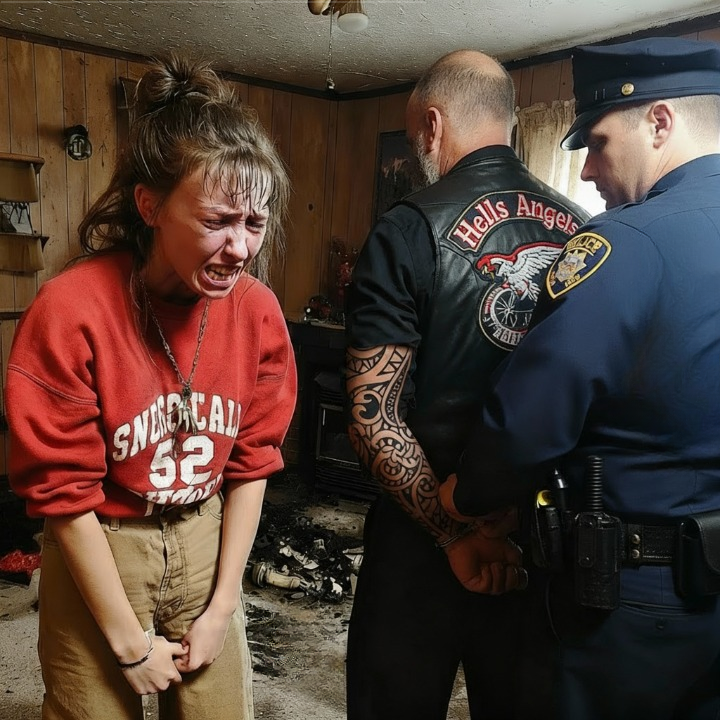Through a haze of tears, I watched as the officers handcuffed the man who had raised me single-handedly for eighteen years. His old leather vest, covered in those motorcycle patches I’d always found embarrassing, snagged on the door of the squad car as they pushed him inside.
