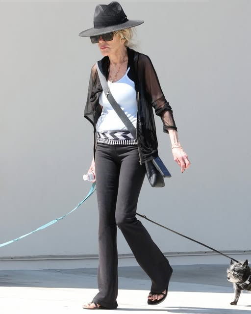 Then, in 2025, she made headlines again after being spotted in public for the first time in months. The beloved actress and filmmaker, now 88, was photographed in Los Angeles on July 13 while taking her dogs for a walk. Dressed casually yet effortlessly chic, she wore a crisp white blouse paired with black flared leggings, a black fedora, and comfortable sandals.