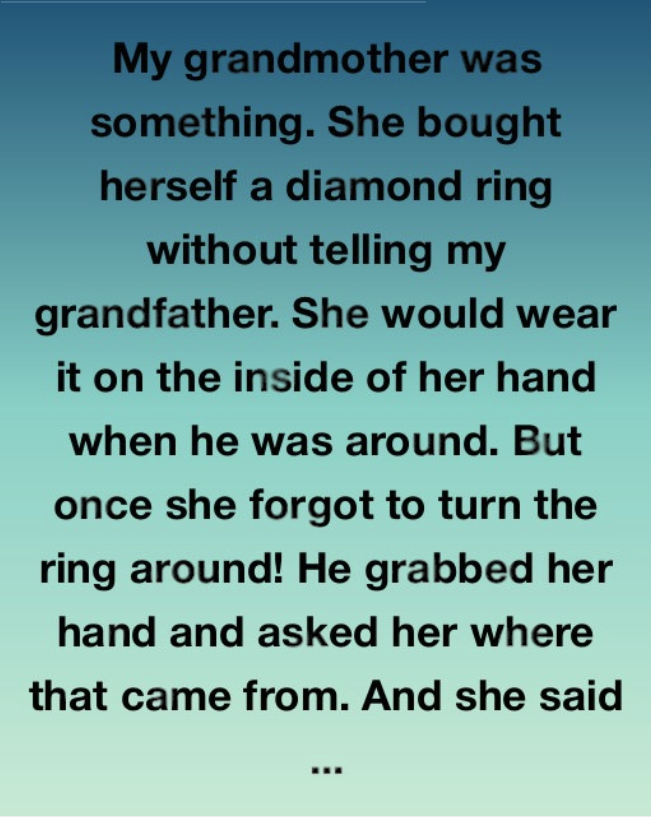 My grandmother was one of a kind. She bought herself a diamond ring without telling my grandfather and would wear it facing the inside of her hand whenever he was around. One day she forgot to turn it, and when he grabbed her hand and asked where it came from, she said, “It was a gift… from me. I got tired of waiting for someone else to spoil me.”