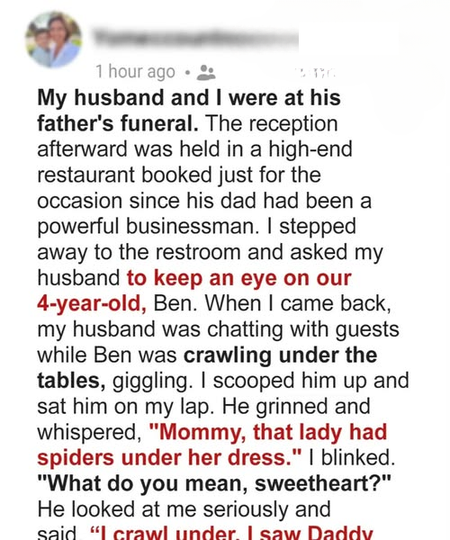 People often say that children view the world without filters, that their honesty comes straight from instinct — raw, unedited, and sometimes painfully sharp. I discovered just how true that was during one of the worst moments of my life: the funeral for my father-in-law, a man I had truly respected.