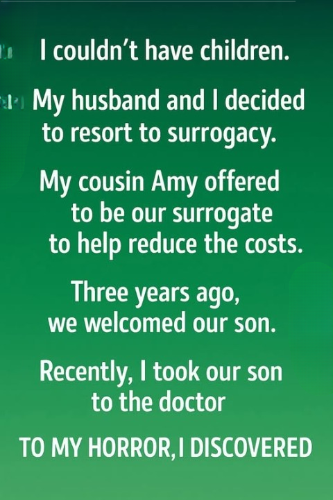 At a recent routine check-up, the pediatrician mentioned noticing a rare genetic trait in our son. It wasn’t alarming, but it caught my attention. I knew my husband didn’t carry that trait… but Amy did. That thought stayed with me longer than I expected, and eventually, I asked for clarification. After a detailed review, the truth emerged — the embryo used wasn’t the donor embryo we had all agreed upon. Instead, Amy had used her own egg. Our surrogate had also become the biological mother of our son.