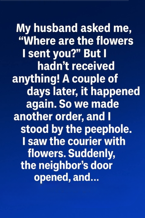 I opened my door carefully, keeping my voice calm, and asked the courier who the delivery was for. He pointed straight to my apartment. My neighbor’s face flushed, but she insisted they were hers — that she’d been receiving flowers for days.