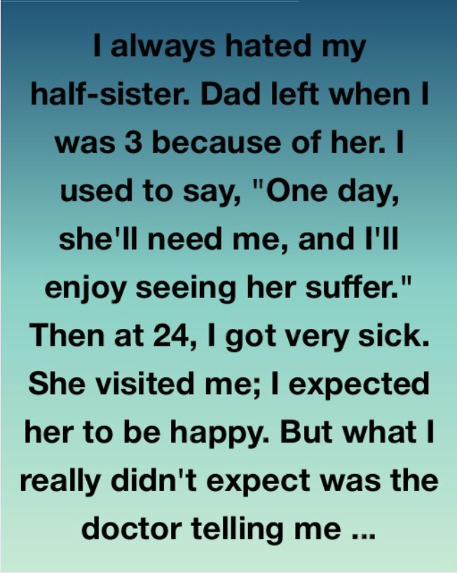 I spent my whole life resenting my half-sister. I blamed her for everything. Dad left when I was three because of her, and I grew up saying, “One day she’ll need something from me, and I’ll enjoy watching her struggle.”