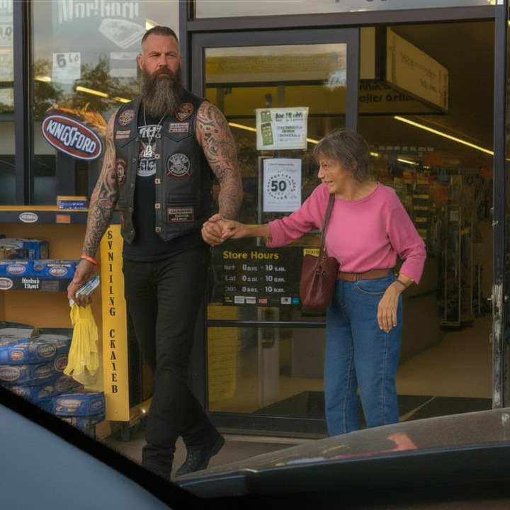I’m the biker who stood behind her. Six-foot-three, 260 pounds, covered in tattoos, wearing my Demons MC vest. The kind of man parents drag their kids away from in parking lots.