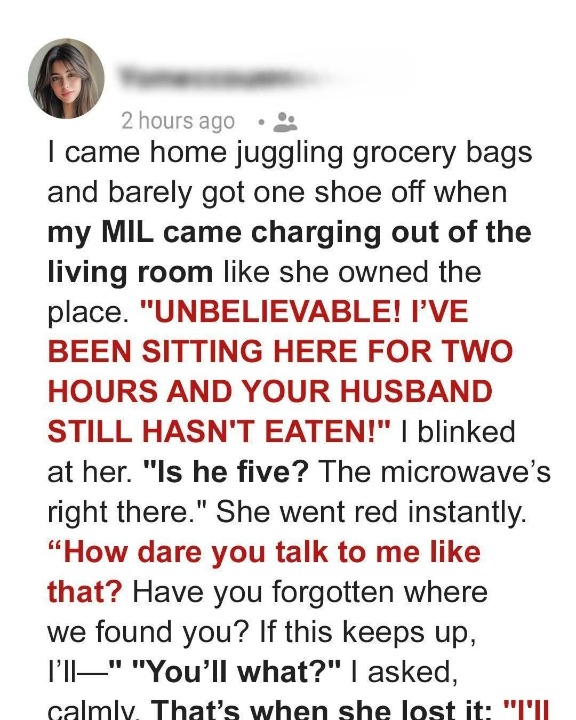 Darla had always been blunt, but living under the same roof amplified every sharp edge. She had opinions about everything I did, from how I cooked dinner to how I dressed to where I came from. At first, I brushed it off as post-surgery irritability. I told myself she was in pain, uncomfortable, and adjusting to her temporary dependence. I welcomed her with open arms, prepared her meals, drove her to appointments, and tried to include her in daily life. I kept reminding myself to be patient.
