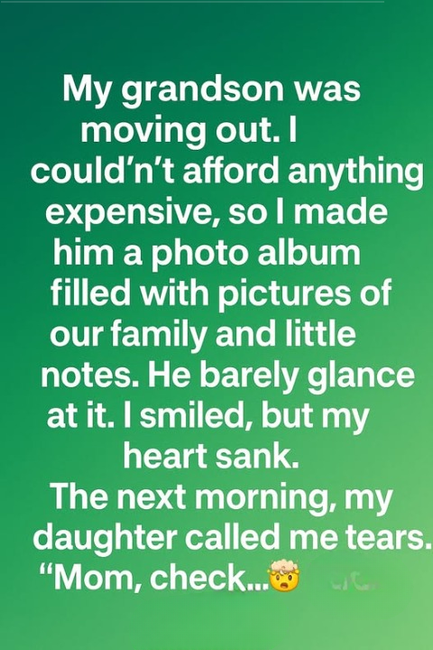 That day, my grandson moved out with the usual things — boxes of clothes, dishes, books. But he also carried something far greater: our history, our laughter, our milestones, captured in ink and photographs.
