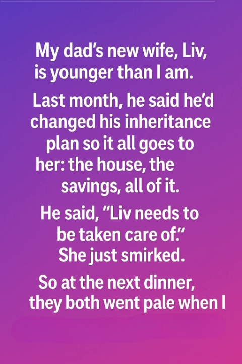 Dad promised he would revisit the plan — not because I demanded it, but because he finally understood how his choices made me feel. Liv offered to help mend the distance between us and to rebuild a healthier sense of family.