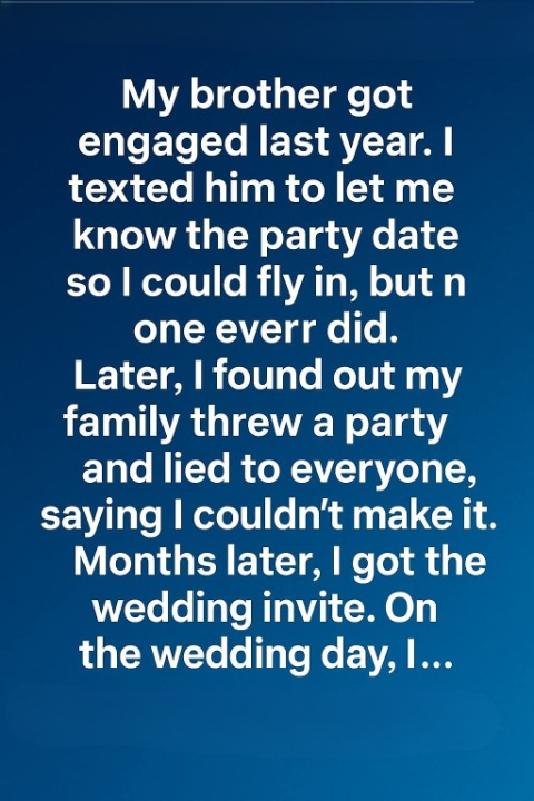 After the ceremony, my brother approached me, clearly happy but also a little curious. He asked why I hadn’t made it to the engagement party. I calmly explained that I never received the date, even though I had reached out. He seemed genuinely confused and apologized immediately. It became obvious that something had simply gotten lost in translation — a forgotten text, a message assumed but never sent, or someone else passing along information incorrectly.